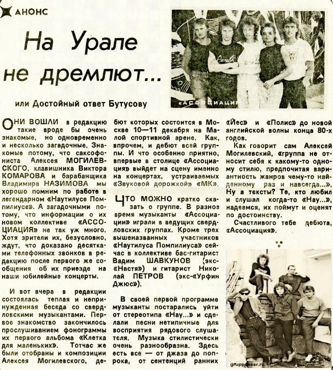 Однако затем Могилевский уходит к Вячеславу Бутусову в Nautilus Pompilius, и деятельность Ассоциации приостанавливается.
