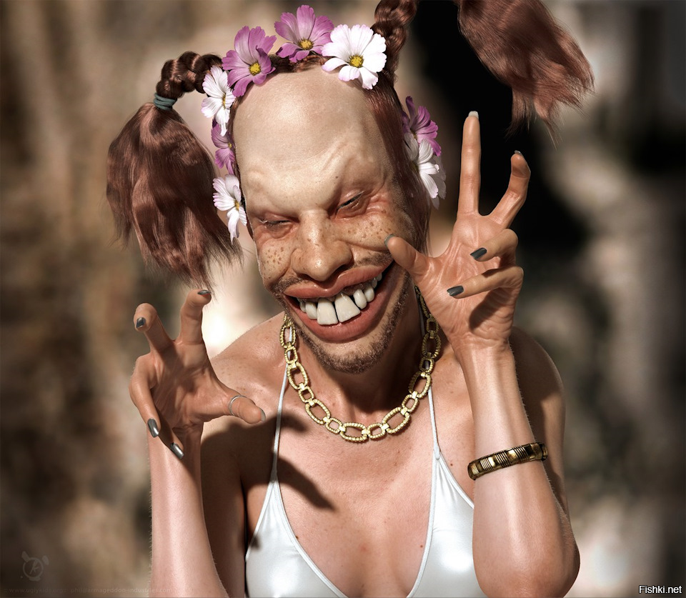 Прическа на длинные волосы? Легко! Сколько лет отращивали это богатство? И сколько лет его не мыли, стесняемся спросить? Забавнее всего тот факт, что сверху еще и бантик умудрились повязать. Как будто это исправит ситуацию.