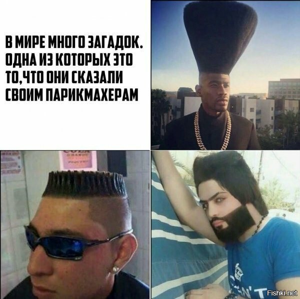 Сколько оптимизма на лицах этих парней. Любопытно, какой запрос у них был, когда они пришли к парикмахеру, и что в итоге пошло не так, чтобы получилось это. Ну зато оригинально, здесь вообще не поспоришь.