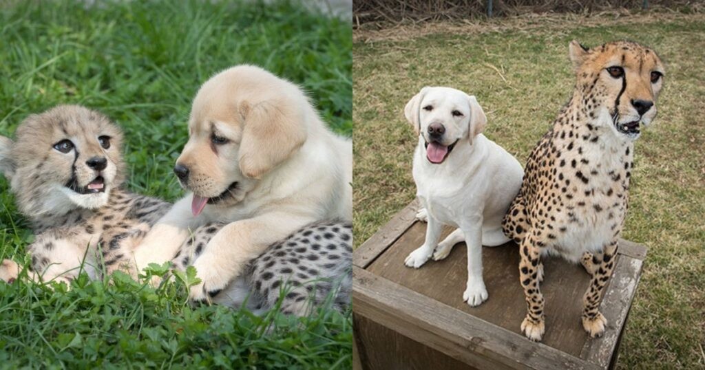 8. Для выращивания в зоопарке довольно нервных и пугливых детёнышей гепардов в качестве компаньона к ним подселяют щенков - представителей добродушных пород