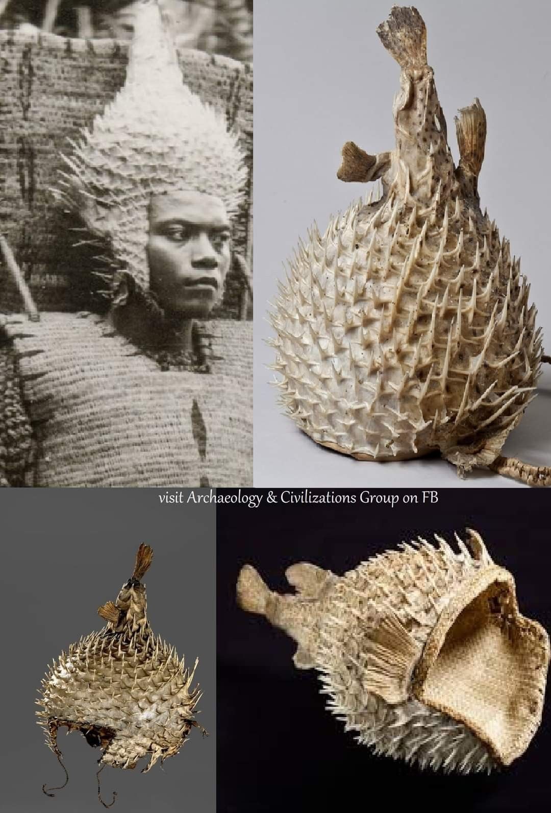 12. В XIX веке воины тихоокеанского государства Кирибати носили необычные головные уборы