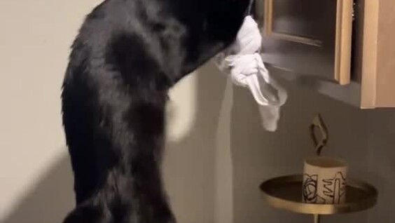 Эта пушистая не может устоять перед своей любимицей — картошкой! Ради круглой подруги она готова даже залезть в закрытый шкаф.