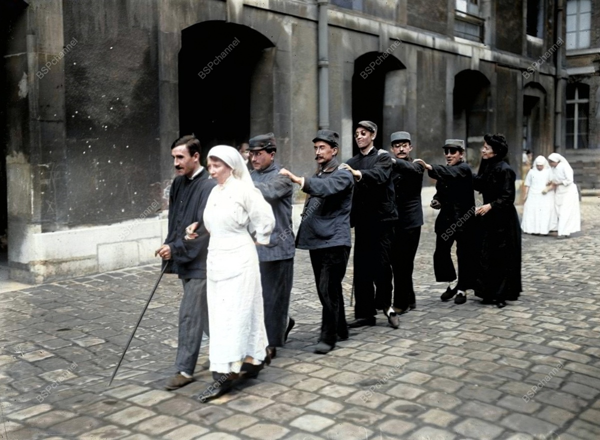 В разгар Первой мировой войны, когда поток раненых не иссякал, во Франции начали создавать специализированные учреждения для восстановления бойцов, вернувшихся с фронта без зрения. Один из таких центров открылся в Париже в 1916 году — здесь слепые солдаты учились заново жить: ориентироваться в пространстве, читать по Брайлю, осваивать ремёсла и возвращать себе чувство достоинства.