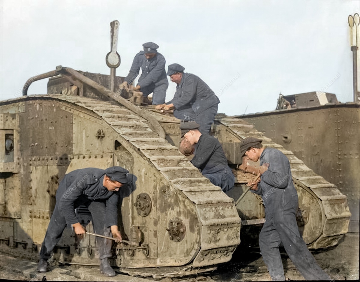 Ремонтные мастерские Британского королевского танкового корпуса. Первая Мировая, 1918 год.
