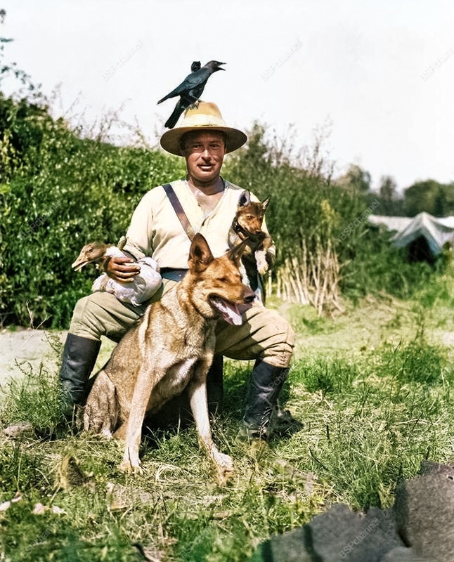 Офицер британского ветеринарного корпуса со своими подопечными. Греция, 1916 год.