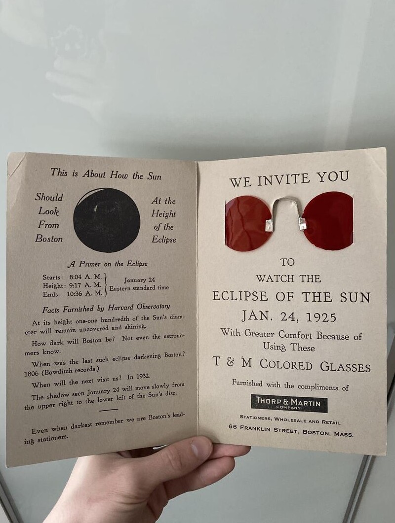 18. Приглашение на просмотр солнечного затмения в 1925 году, включающее специальные очки
