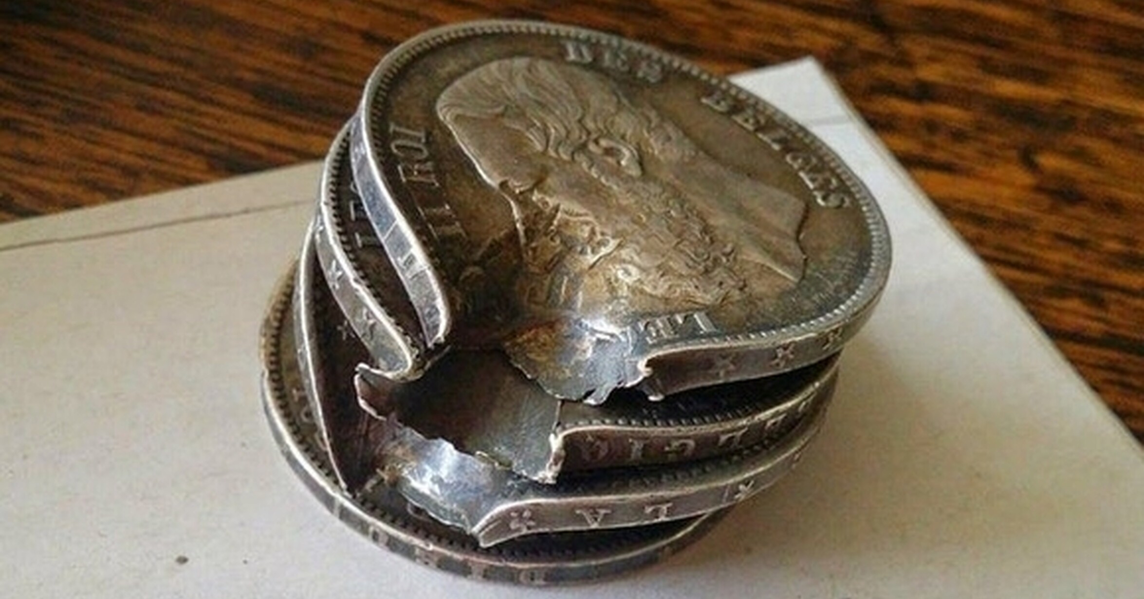 3. Эти монеты были в кармане солдата во время Первой мировой войны и спасли его от пули