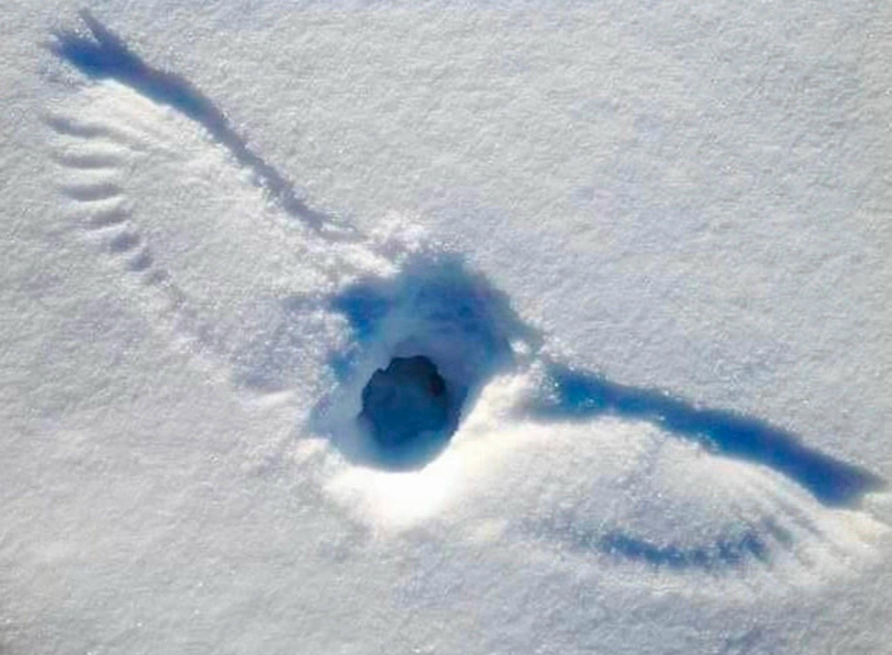 19. Сова поймала что-то съедобное и оставила свой отпечаток на снегу