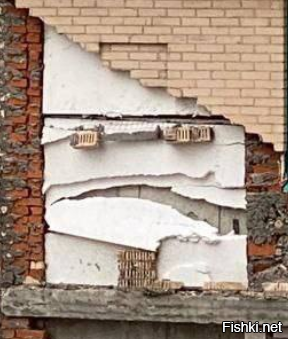Оказывается, выражение про строительство "из дерьма и палок" - не фигура речи, а вполне реальный факт. На кадрах видно, что фасад представляет собой неровно уложенные кирпичи пополам со строительным мусором.