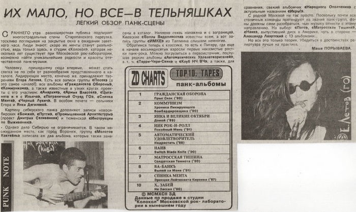 Было и письмо-донос в прессу на независимых подпольщиков — моих близких приятелей, которые делали абсолютно независимый контент, выпускали самиздатовские журналы «Урлайт» и «Зомби». Подписи под этим обращением поставили и Петр Мамонов, и Александр Липницкий, и Артемий Троицкий*. После этого в ряде газет вышли статьи «Чтиво из подворотни» и «Перевёртыши», критикующие «подпольных менеджеров» из самиздата. Это была самая настоящая борьба за сферы влияния. Но и справедливости ради стоит сказать, что не все московские группы бежали сломя голову в рок-лабораторию. Например, там почему-то не было Александра Градского и Машины Времени, не говоря про кайфовые протестные, как правило, панк-группы второго эшелона» (из воспоминаний А. Кушнира).