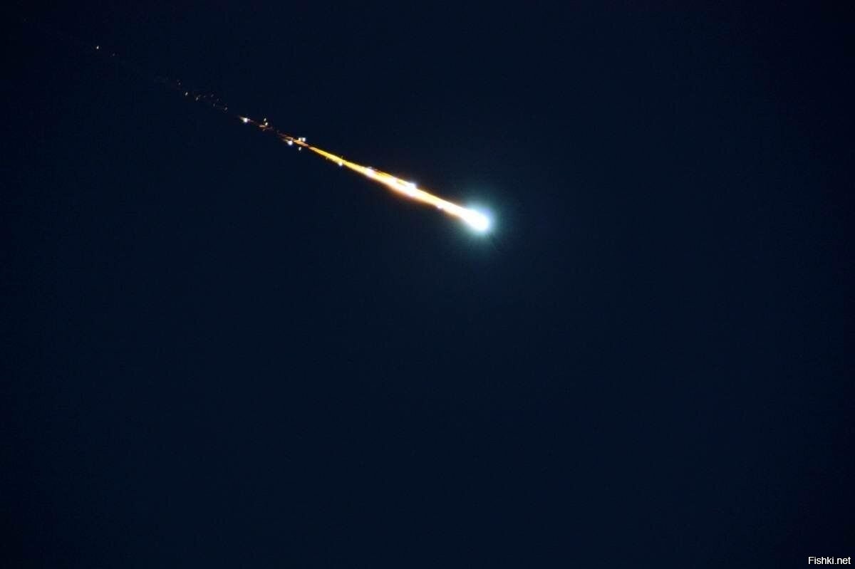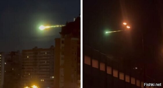 В соцсетях распространились кадры ночного неба Москвы и Подмосковья. Местные жители засняли яркий огненный объект с длинным шлейфом с зеленоватым свечением.