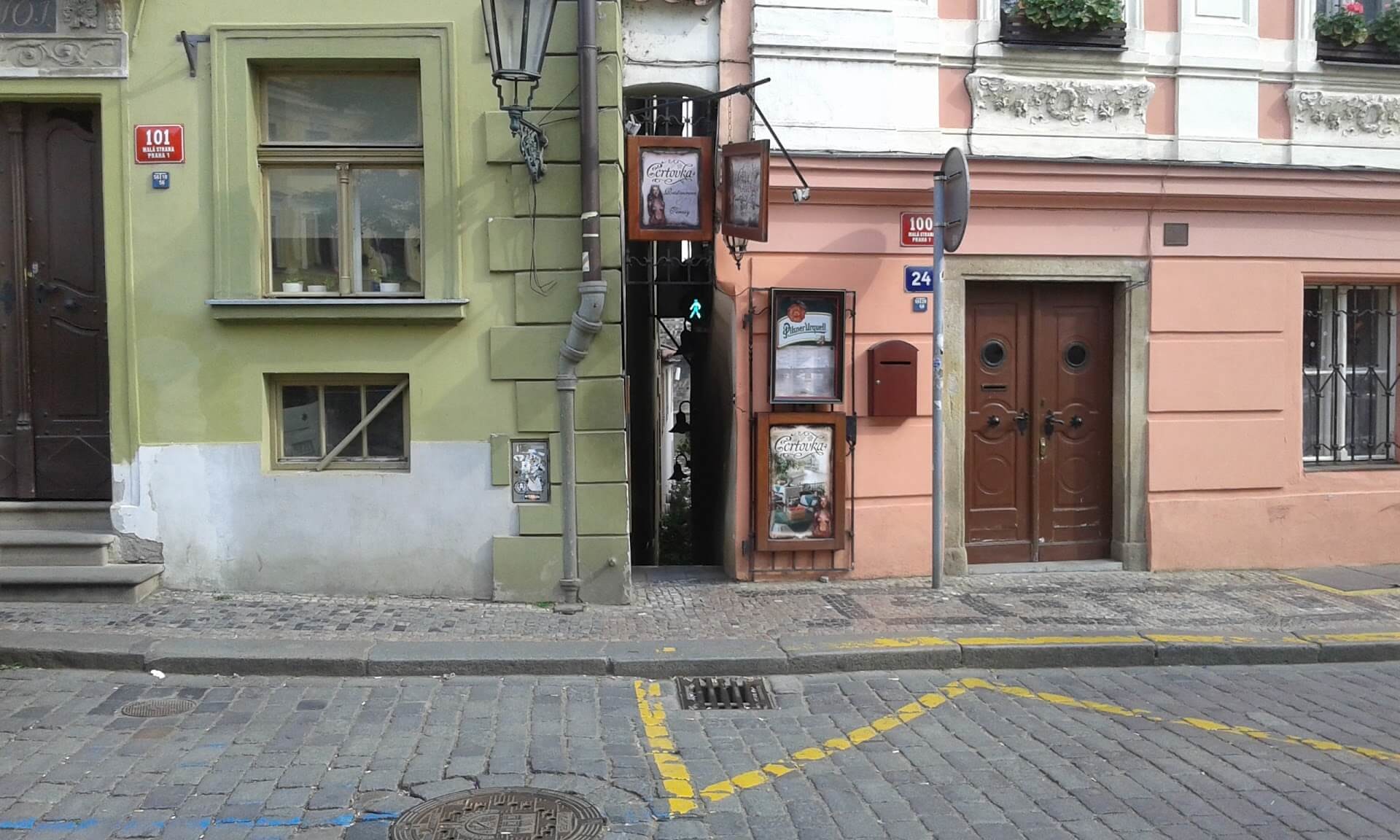 Так выглядит самая узкая улица в Праге, где люди покрупнее даже могут не разойтись.