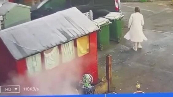 На шокирующих кадрах запечатлён момент, когда 68-летняя Сьюзен Варли провожала своего четырёхлетнего внука в школу, и в этот момент её соседка, 56-летняя Ина Пристли, подошла и выплеснула ей в лицо горячую воду.