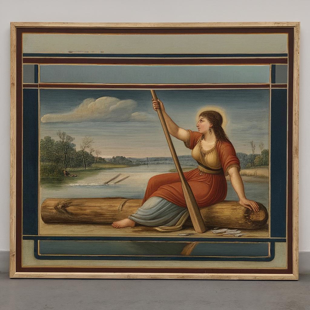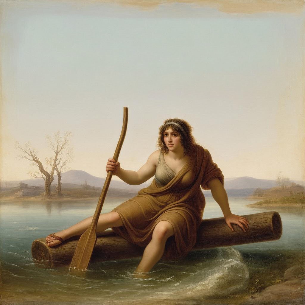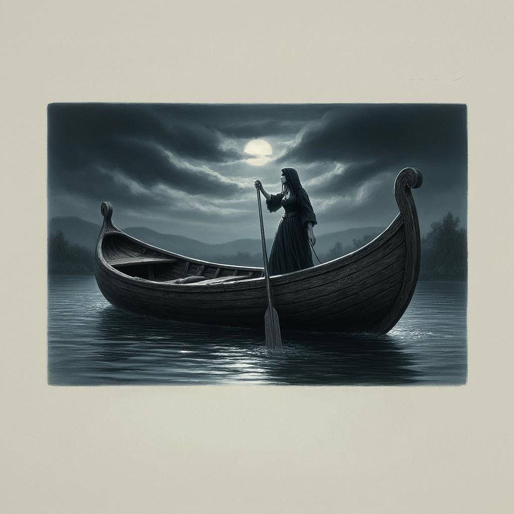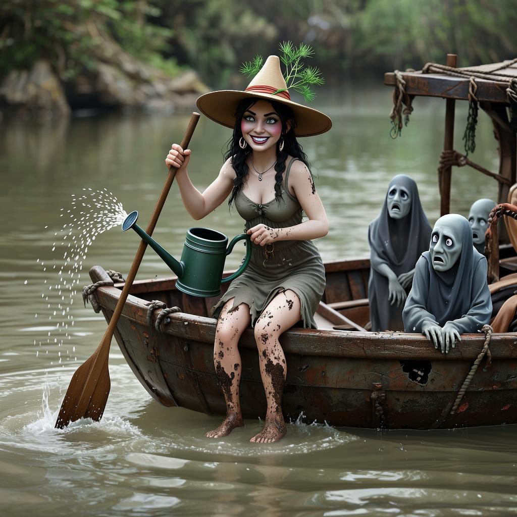 Запрос звучал "создай картину с Хароном-женщиной, перевозящей души через реку Стикс с веслом и на гнилом бревне." И так, приятного просмотра. Не судите строго ИИ он и в Африке ИИ.