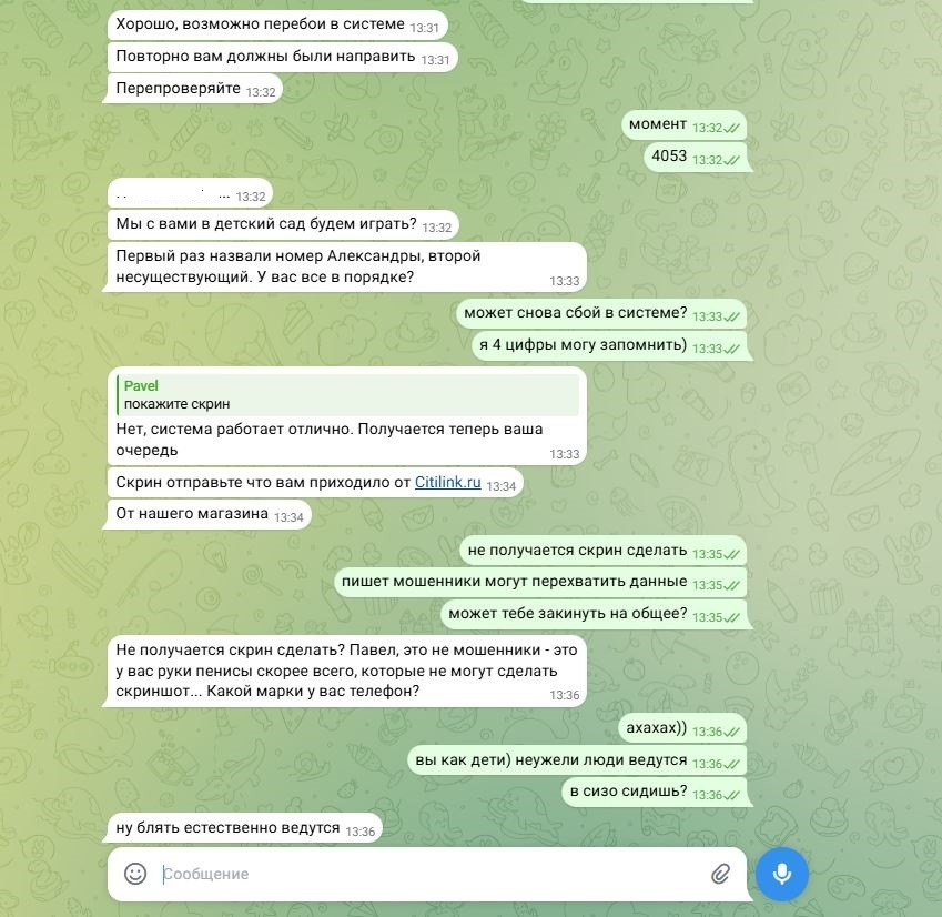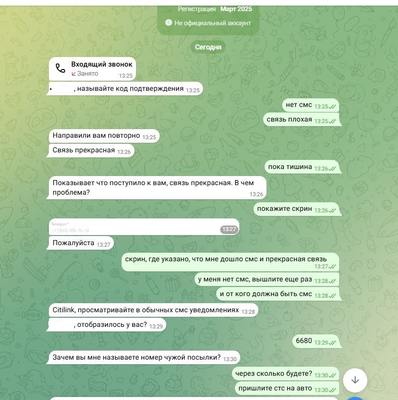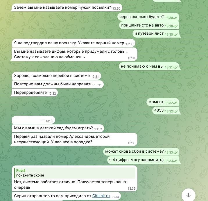 Звонит мне курьер на мобильный, якобы он везет мне доставку (ранее оплаченную), при этом он знает адрес моей прописки и ФИО. Говорит, что ему для подтверждения заказа нужен код, который он отправил мне в смс и этот код он напишет на посылке, чтобы не потерять)))