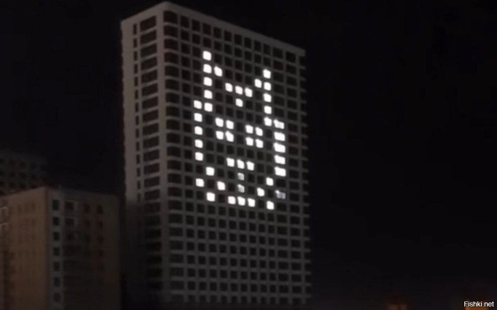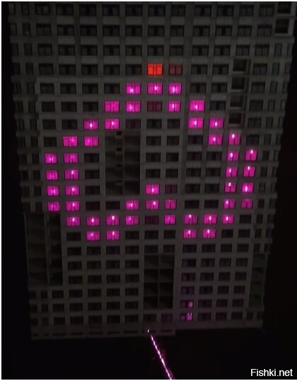 На одном из зданий в окнах зажгли свет так, чтобы получилось сердце.