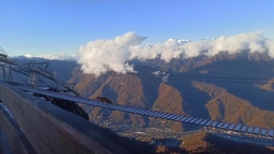 На одном из горных курортов Сочи лиса прошла по подвесному мосту на высоте 2200 метров. Передвижение рыжей экстремалки попало на видео очевидцев.