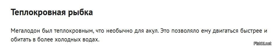 Конечно, млекопитающим по температуре тела мегалодон уступал. Но имел и внутренний источник "прогрева" тела, который позволял иметь температуру выше окружающей среды.