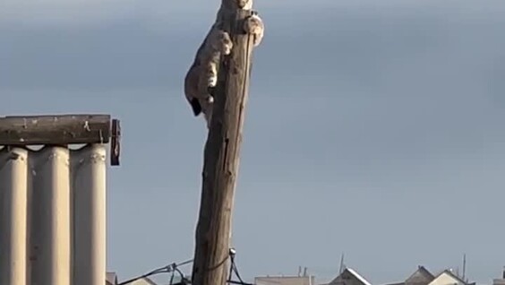В Забайкалье жителям пришлось спасать рысь, которая залезла на столб. Дикую кошку на вершину опоры ЛЭП загнала стая собак. Очевидцы публикуют видео с рысью.