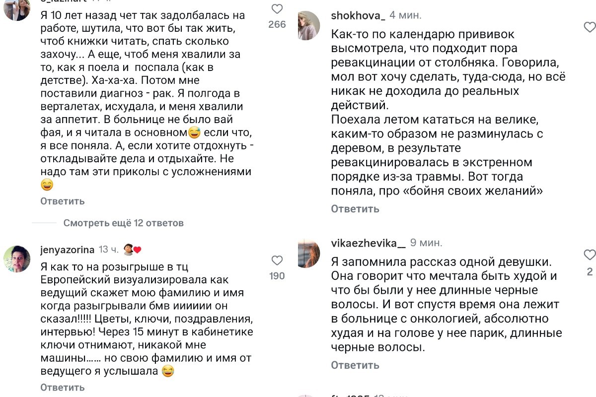 Девушка попросила интернет-пользователей поделиться своими наблюдениями за исполнением желаний. Выяснилось, что Вселенная действительно может отозваться на просьбу, вот только понимает всё буквально и не всегда так, как хотелось бы мечтателю.