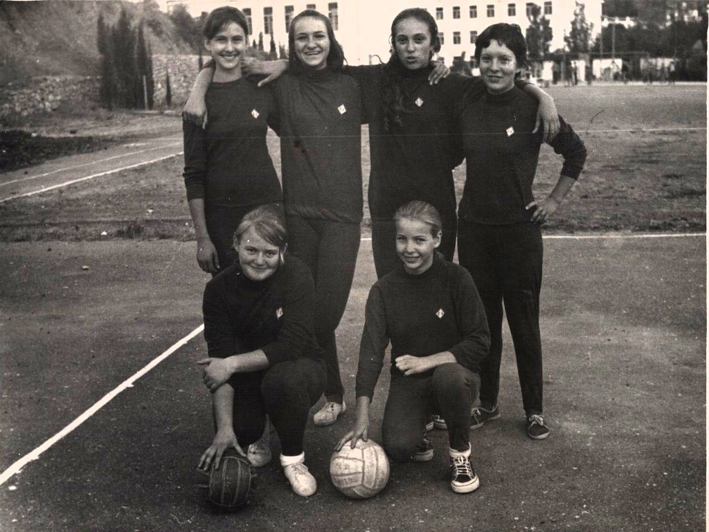 Архив Марины Марковны Сосенковой. Соревнования по волейболу на школьном стадионе. Сентябрь – октябрь 1971 года. Неизвестный автор. Гурзуф.