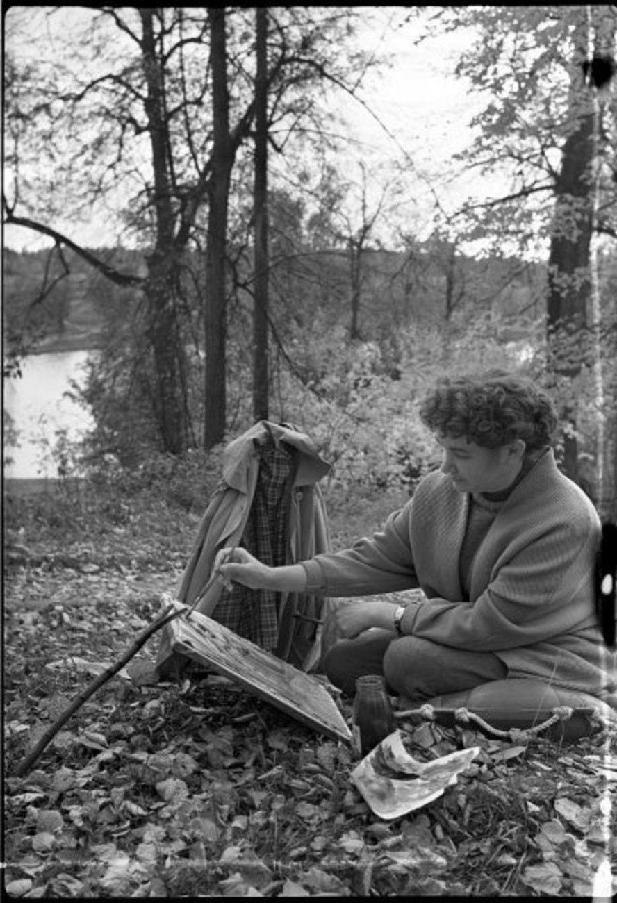 Художница на этюдах в усадьбе «Суханово». 1955–1965 годы. Автор: Дмитрий Козлов. Московская область, деревня Суханово.