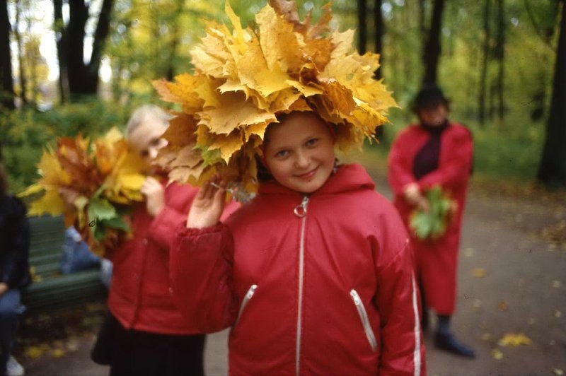 Девочка в венке из кленовых листьев. 1995 год. Автор: Всеволод Тарасевич. Санкт-Петербург.