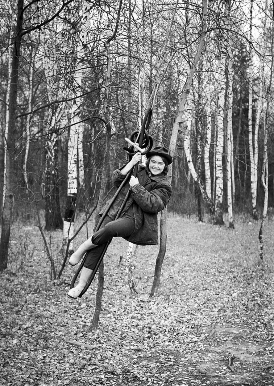 На тарзанке. Станция «41 км», окраина города Троицк. Октябрь 1979 года. Автор: Сергей Сухарев. Московская область.