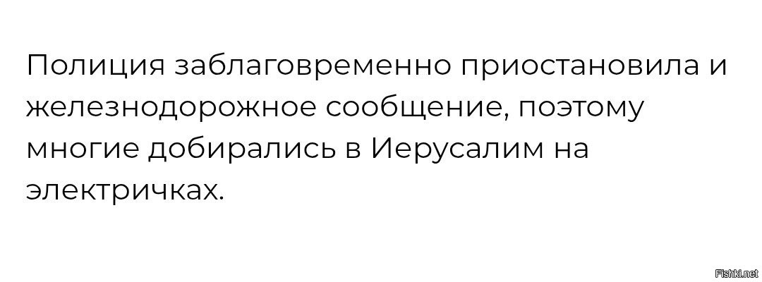 Полиция заблаговременно приостановила и железнодорожное сообщение, поэтому многие добирались в Иерусалим на электричках.
