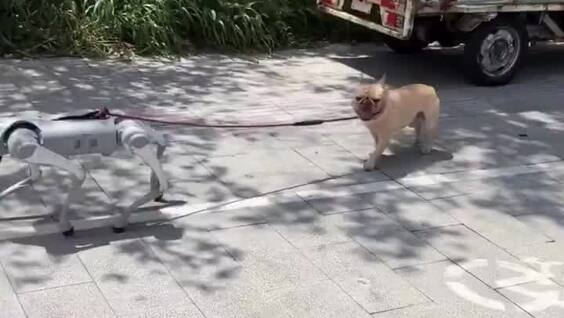 Робопсы начали выгуливать настоящих собак в Китае. Первый случай уже попал на видео.