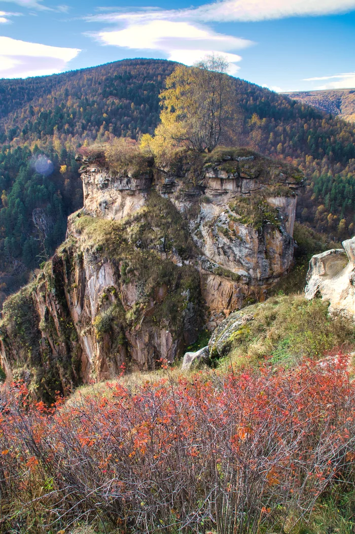 А еще это ущелья, водопады, скалы, минеральные источники и даже нарзанные ванны, десятки крутых фотолокаций, парящие над горами орлы и, если повезет с погодой, фантастические виды на Эльбрус.