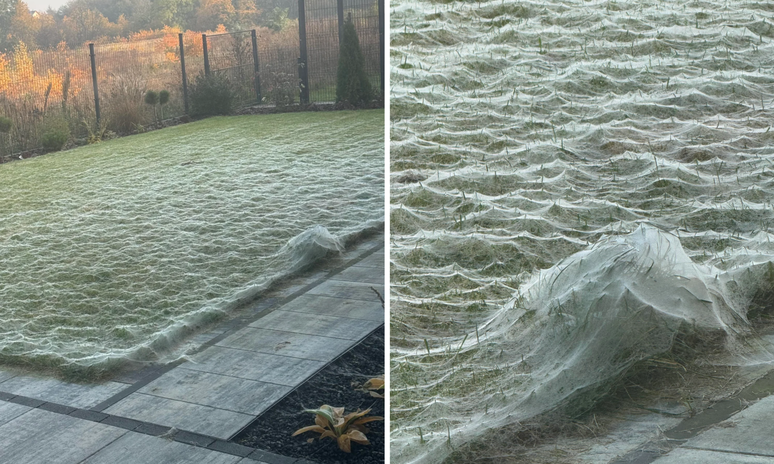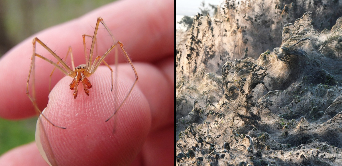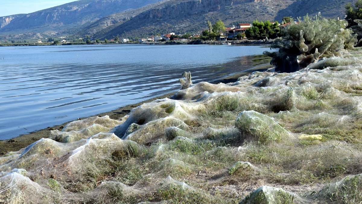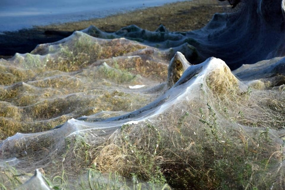 Плюс этот сезон совпал с периодом размножения, так что пауки устроили настоящую вакханалию. Они плели кучу сетей, запутывая всё вокруг, ели и спаривались. Там же выводился молодняк, который плёл уже свои сети. Из-за этого сотни метров прибрежной зоны оказались густо запутанные паутиной, будто бы декорациями к ужастикам.