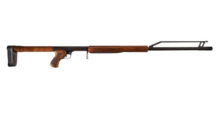 Разработанный специально для соревновательной стендовой стрельбы, этот однозарядный дробовик 12-го калибра отличается своеобразным прикладом и странной геометрией ствольной коробки, которая больше подошла бы для фантастических фильмов, чем для стрельбища. Но странный внешний вид послужил своей цели — линейная конструкция удерживала ствол на одной линии с глазом стрелка, направляя отдачу под углом вниз и способствовала лучшему контролю оружия.