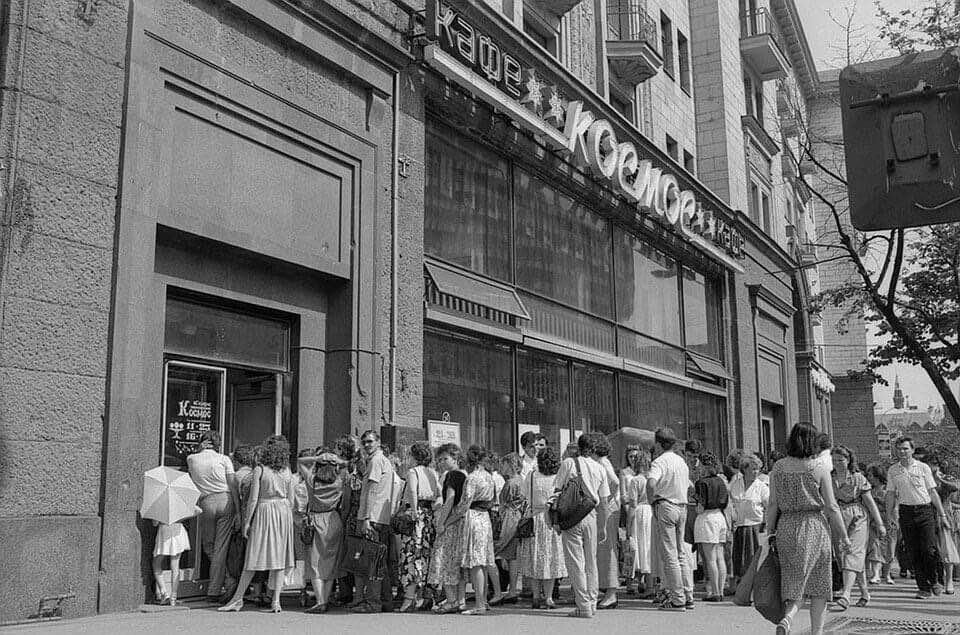 Огромная очередь в кафе "Космос" на улице Горького (современная Тверская).
