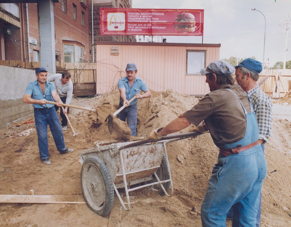 На Пушкинской площади идёт подготовка к открытию первого ресторана "МакДональдс" в СССР.