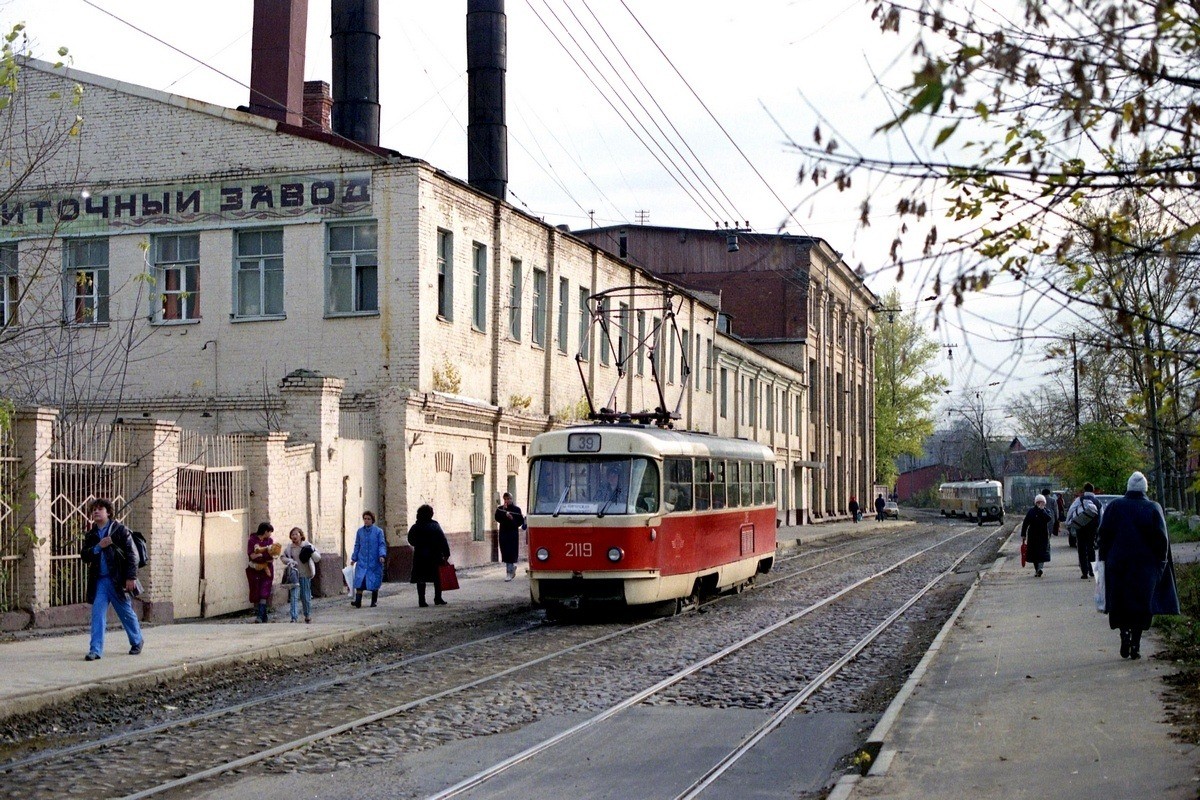 Трамвай в Холодильном переулке у Плиточного завода, неподалёку от станции метро "Тульская".