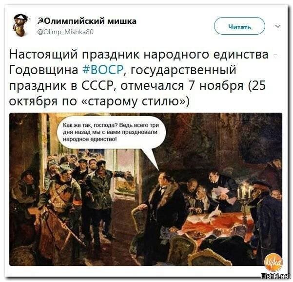 Вот его и надо отмечать, а не эту фикцию, которую кстати, по безграмотности, ещё и пытаются привязать к изгнанию поляков из Кремля.