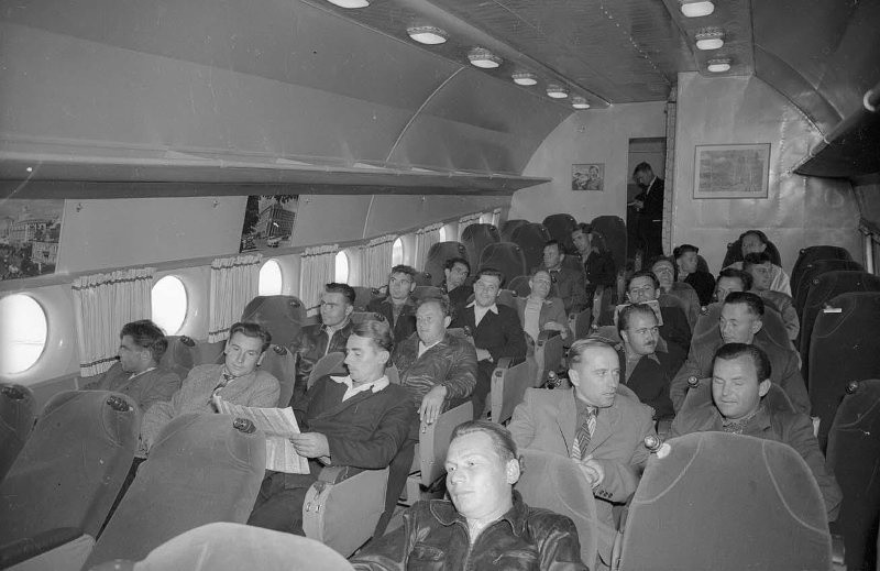 Аэропорт Внуково. В салоне самолета. 1959 год. Автор: Эммануил Евзерихин.