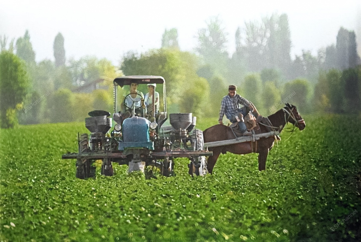 Культивация хлопка на полях колхоза имени Ленина Ахунбабаевского района Ферганской области. Узбекская ССР, 1970 год.