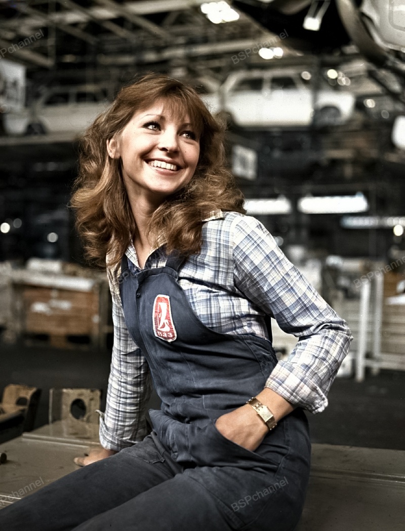 В марте 1971 года первую очередь Волжского автомобильного завода официально ввели в эксплуатацию — решение утвердила государственная комиссия. По проекту эта часть предприятия должна была выпускать 220 тысяч автомобилей в год. Однако для гигантской страны такой объём оказался недостаточным. Личный автомобиль быстро превратился в дефицит и символ роскоши, на который приходилось ждать годами. А город, выросший на месте бывшего Ставрополя-на-Волге, — Тольятти, в народе стали называть Автоградом, ставшим символом советской автомобильной мечты. Фотография скорее всего постановочная, но красивых девушек на больших предприятиях всегда было в достатке.