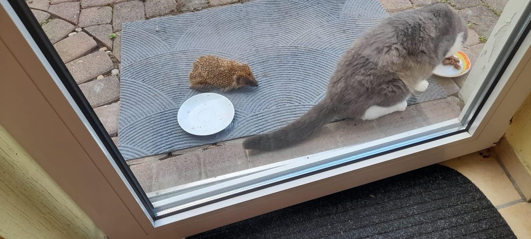 25. Моя мама уже давно заботится о соседском коте, а недавно начала кормить и ёжика