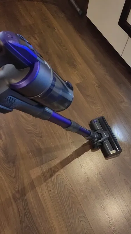 "Пылесос очень лёгкий, удобный в использовании. За доли секунды убрал мусор от кошачьего лотка. Большой пылесборник, что есть хорошо. У нас частный дом зарядки хватило на 3 комнаты и коридор, при использовании разных уровней. Мощный даже на первом режиме, а когда включаешь турбо, то даже коврик поднимает."