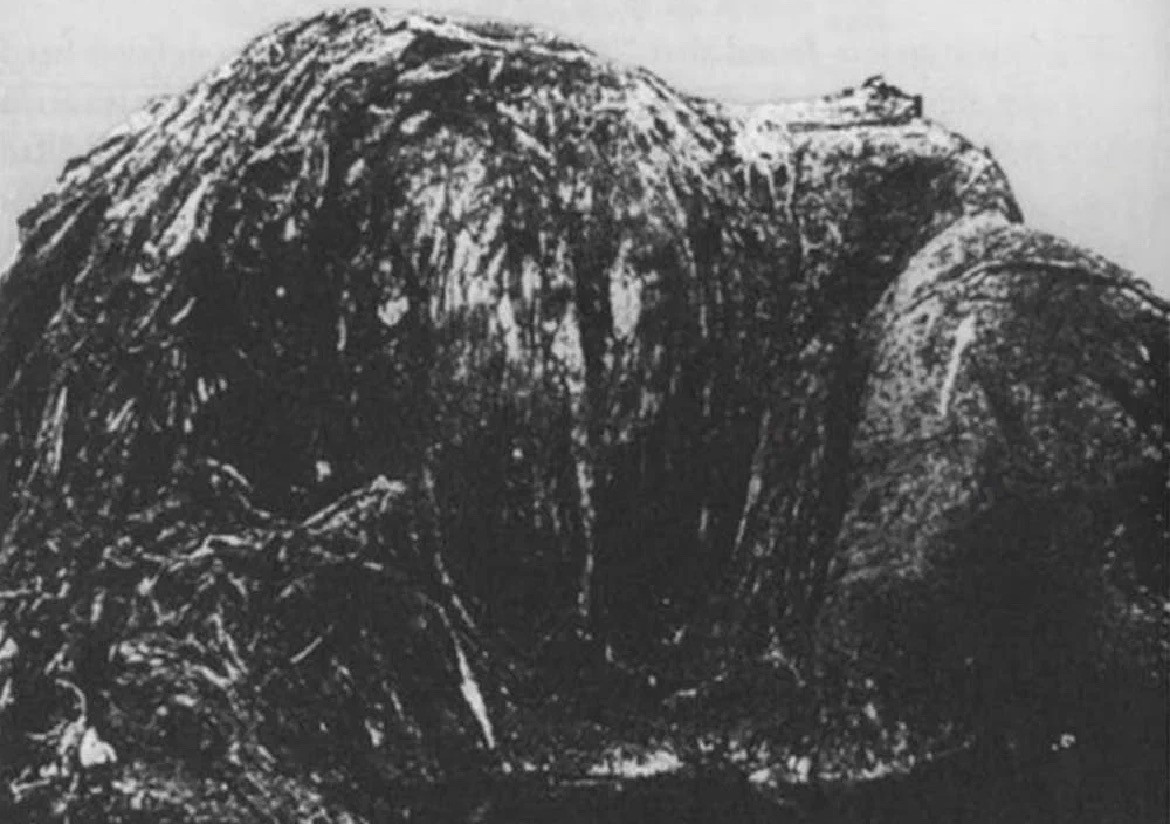 Доктор Уэбб прибыл на пляж на следующий же день и быстро установил, что перед ним отнюдь не кит. Но что же это было? Гигантский комок плоти, изъеденный тлением, не имел ни костей, ни глаз, ни каких-либо опознаваемых конечностей. Тело монстра было бледно-розовым, почти белым, а его структура напоминала плотную резину. Доктор Уэбб, единственный учёный муж, увидевший загадочный образец воочию, прикинул, что тварь весит все пять тонн. После долгого изучения он выдвинул смелое предположение: на берег выбросило исполинского спрута.
