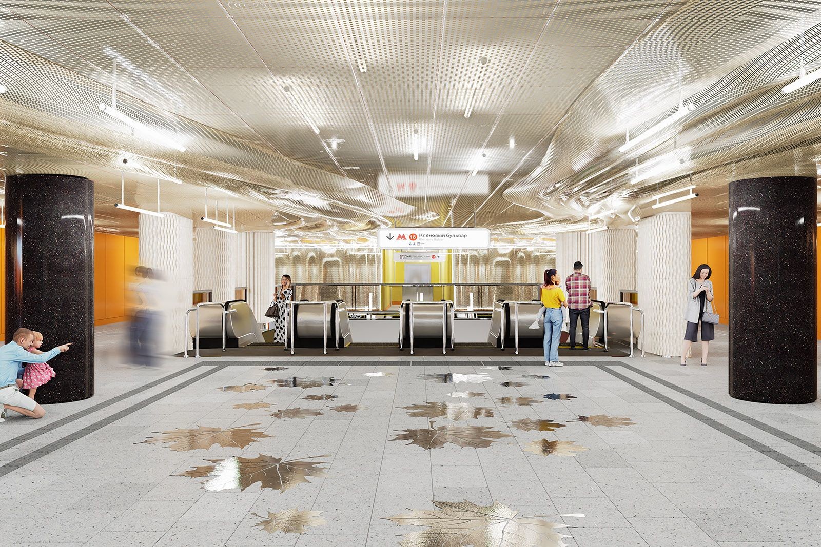 Преобладающим элементом в дизайне станут арки. Их расположат таким образом, чтобы создать сквозные перспективы через весь ансамбль. В отделке также обыграют название станции: на путевых стенах и на полу в вестибюлях выложат кленовые листья.