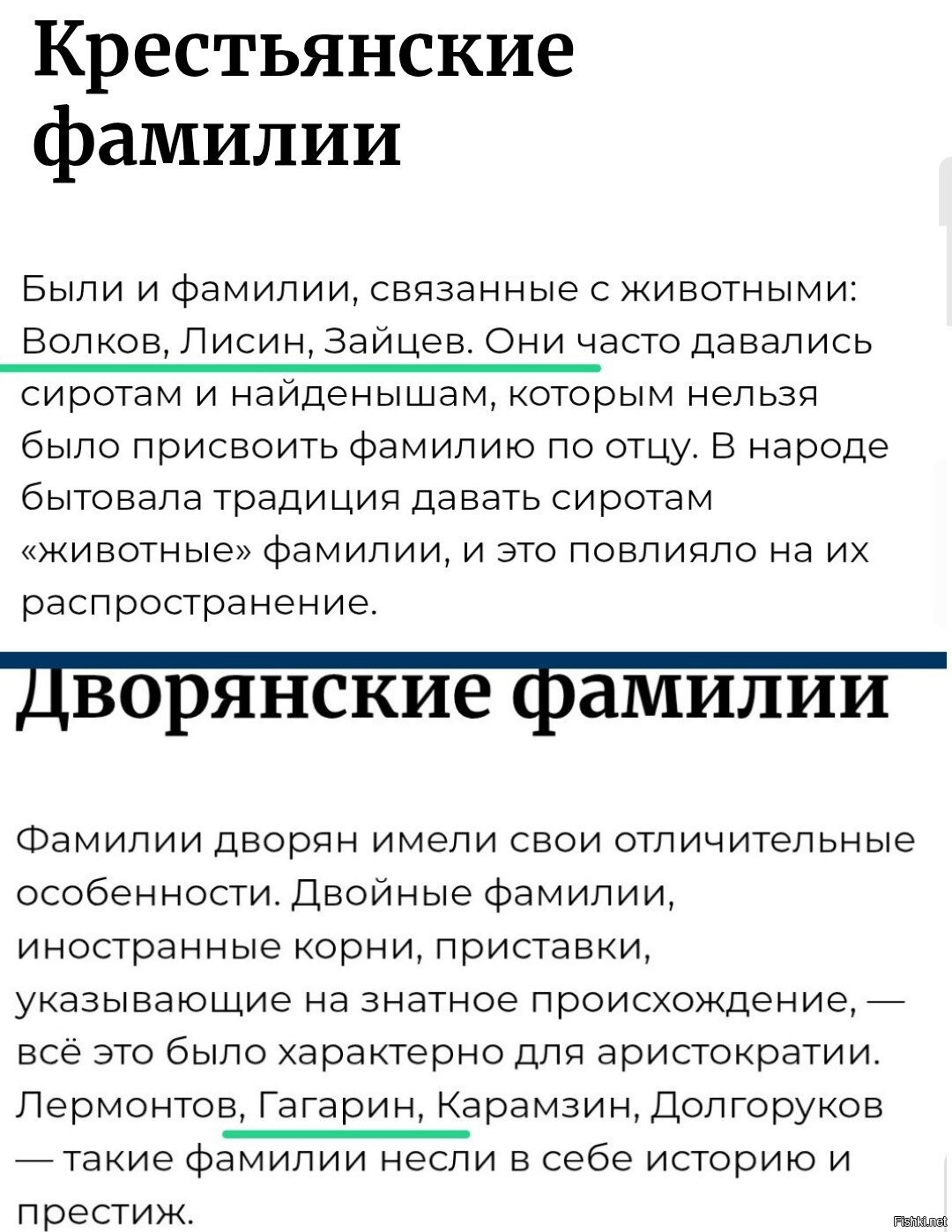 И не надо забывать, что дворянским крепостным часто фамилии их владельцев присваивали. Поэтому если у человека фамилия, например, Шереметьев или Долгорукий - то это само по себе ни разу не означает, что он дворянского происхождения. Может быть и совсем наоборот, из дворянской одушевленной собственности.