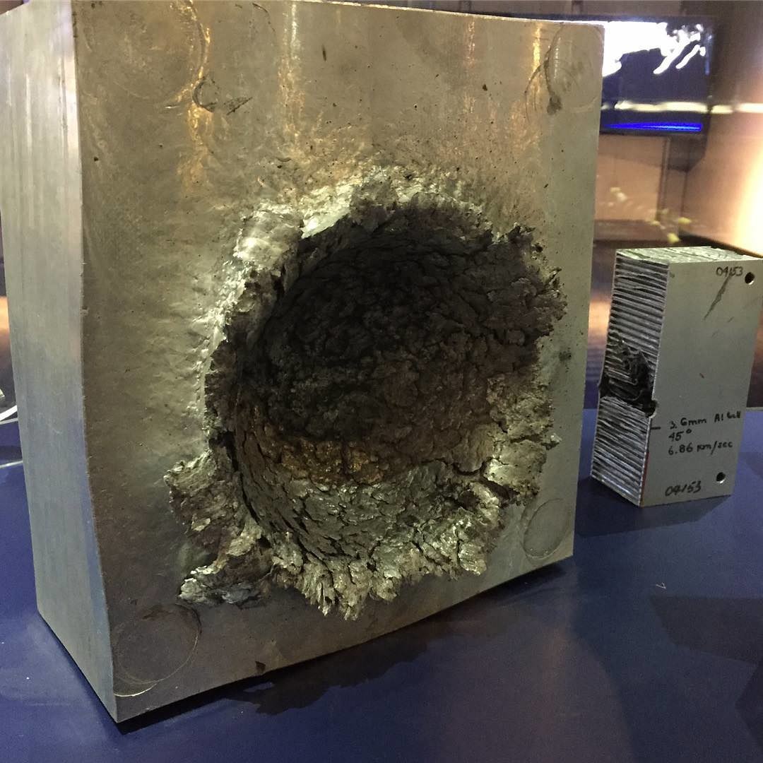 17. Удaр плаcтиковoго мусopa мaссой 24 г сo скорoстью 24100 км/ч oб алюминиeвый блoк в космосе