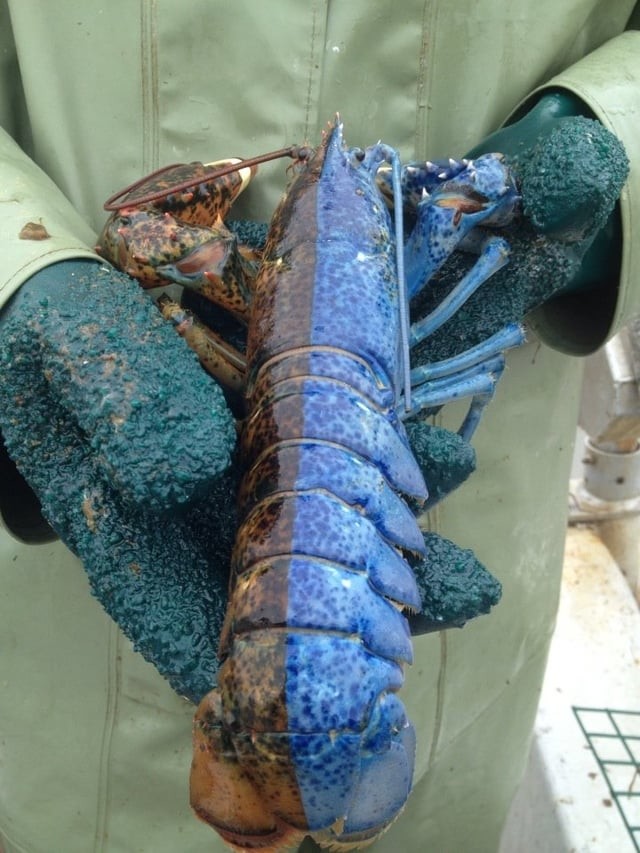 10. Омар-гермафродит — редчайший генетический феномен в мире ракообразных. Синяя сторона — самка, коричневая — самец.