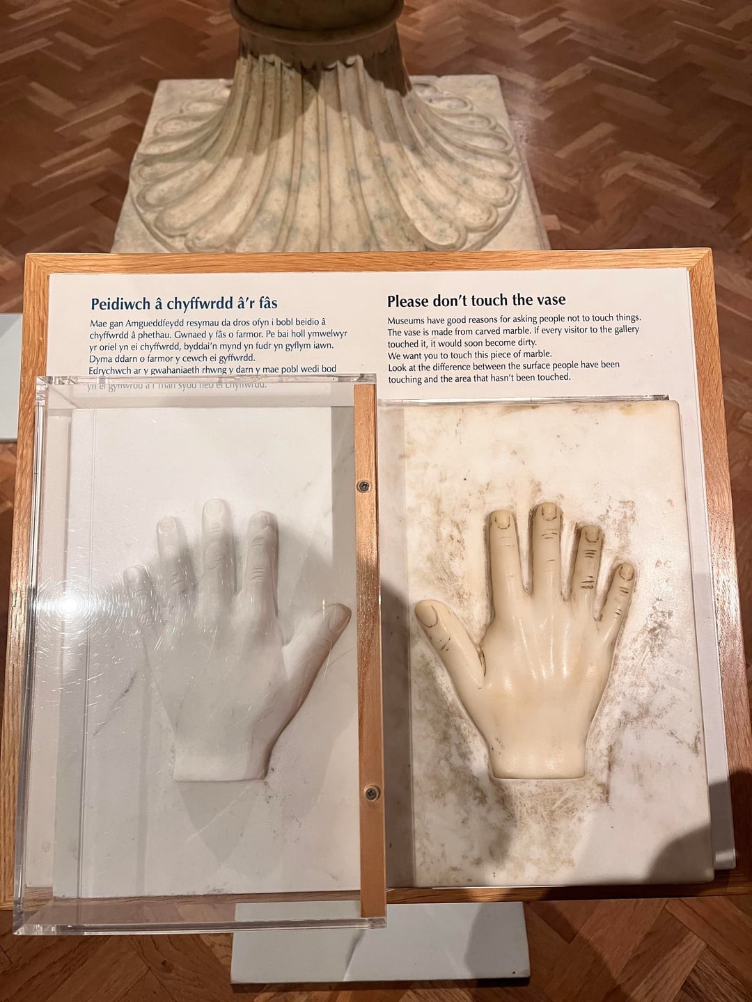 19. Экспонат показывает, что происходит с мрамором, если его трогать руками