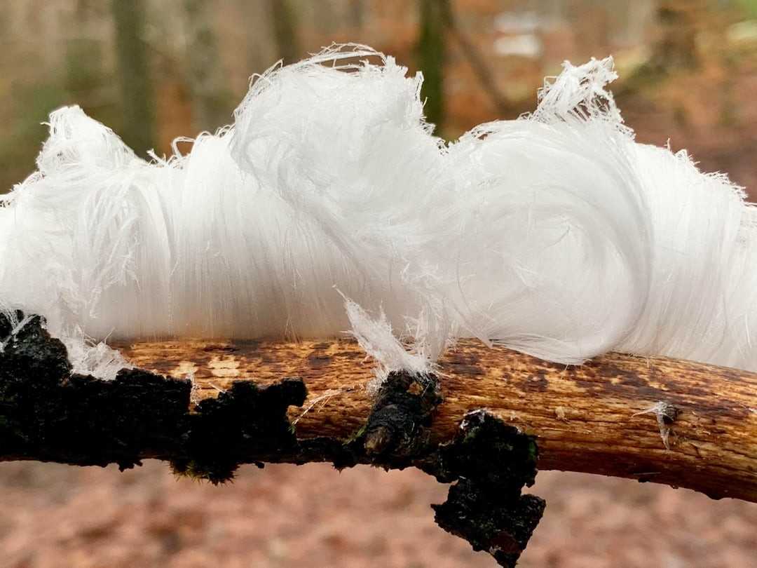 8. Пар, исходящий от ветки, превращается в хрупкие ледяные нити