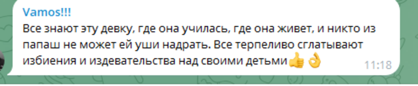 Комментаторы в местных Телеграм-каналах отмечают, что этой группы является 16-летняя девушка с короткой стрижкой, которая активно увлекается боевыми искусствами и стимулирует участников к дракам.